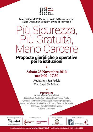 L'Associazione VI Opera San Fedele, in collaborazione con la rivista Dignitas, organizza una giornata di riflessione in cui i rappresentanti della società civile e del terzo settore dialogano con le istituzioni, alla ricerca di proposte concrete per migliorare il sistema penale.